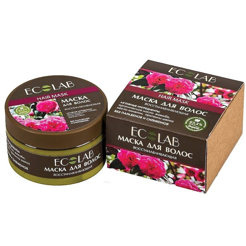 Маска для волос Восстанавливающая. Масло жожоба богата аминокислотами в составе белков. По своей структуре они сходны с коллагеном. Коллаген помогает поддерживать упругость кожи; продлевать ее молодость.