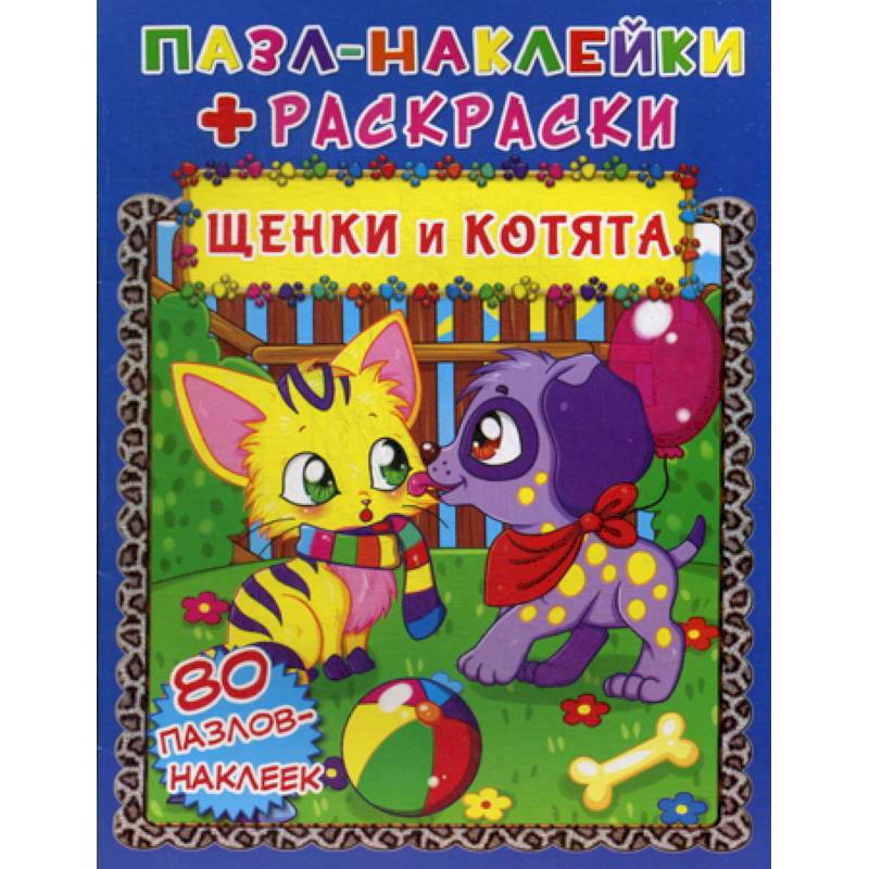 Пазл-наклейки + раскраски. Щенки и котята