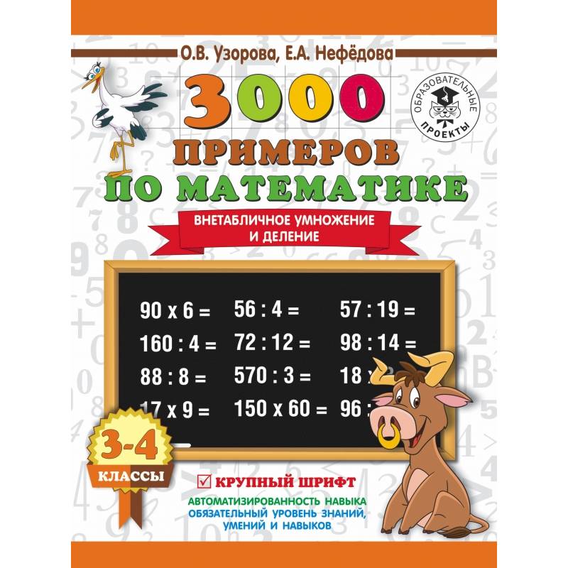 3000 примеров по математике. 3-4 класс. Внетабличное умножение и деление. Крупный шрифт. Новые примеры