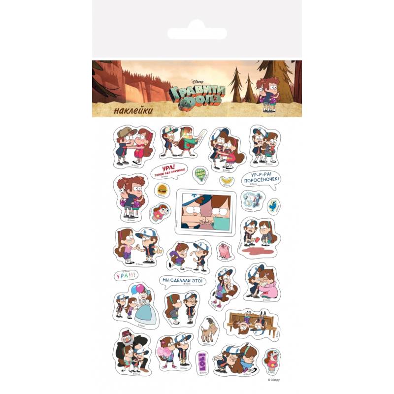 Гравити Фолз повсюду - ведь ты можешь взять наклейки и смело украсить все, что захочешь! Целых 34 наклейки с любимыми героями сериала!