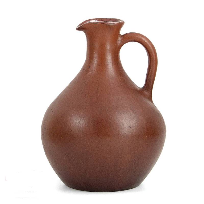 Гончарный кувшинчик ручной работы с узким горлом. Внутри покрыт пищевой глазурью. Удобно использовать для масла, вина или крепких спиртных напитков.