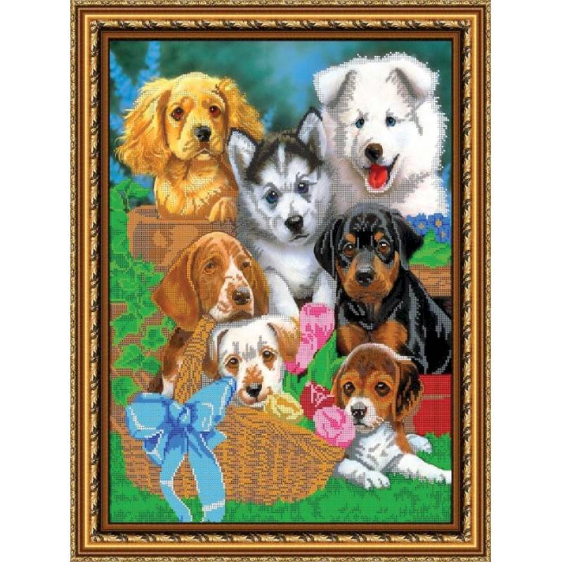 Набор для вышивания бисером №147 «Щеночки» бисер Чехия 37,2x49,7 см