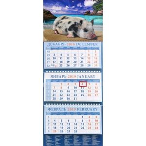 Календарь квартальный на 2019 год "Год поросенка. Отдых на морском песочке" (14905)