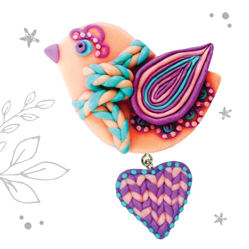 Брошь из полимерной глины своими руками "Птичка"