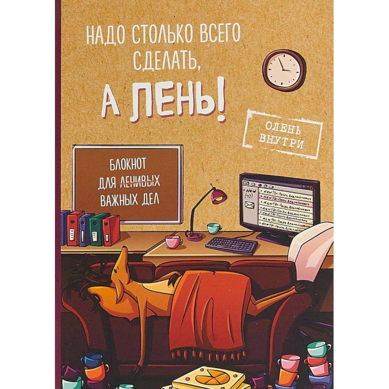 Самый популярный олень интернета, который заполз на страницы этого цветного блокнота, будет весьма своеобразным способом мотивировать вас преодолевать лень, и бороться с унынием. Авторские рисунки нижегородских художников Григория Чернобая и Светланы Резниченко - улыбнут любого, кто знает, ценит и любит это прекрасное чувство, когда надо что-то сделать, а лень!