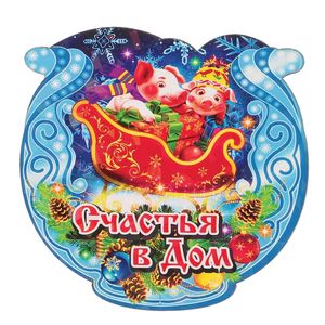 Магнит деревянный подкова "Счастья в дом" с голографией, 7х7см, Символ года 2019