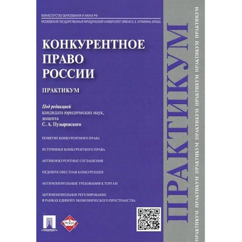 Практикум подготовлен в соответствии с программой учебного курса по конкурентному праву в рамках Программы стратегического развития ФГБОУ ВПО Московский государственный юридический университет имени О.Е. Кутафина (МГЮА); НИР «Развитие конкурентного права в современной России», проект 2.1.1.1. Законодательство приведено по состоянию на январь 2015 г. Для студентов-бакалавров, специалистов, магистров и аспирантов образовательных учреждений высшего профессионального образования.