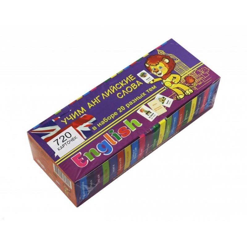 "Учим английские слова"- это большой обучающий комплект, состоящий из 720 карточек, на английском языке на различные тематики: семья, дом, животные, природа, еда, напитки и многое другое. Сочетание ярких картинок и слов сделает процесс обучения эффективным и занимательным. Закрепить результаты помогут примеры употребления слов в предложениях. В комплект входит 20 наборов карточек по 36 обучающих карточек в каждом. Комплект предназначен для детских садов, школ, университетов, а также для самостоятельного изучения языка пли с преподавателем.