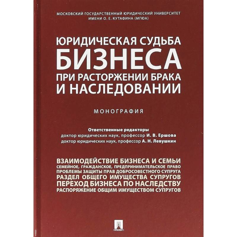 Коллективная монография посвящена актуальным проблемам определения юридической судьбы бизнеса при расторжении брака и наследовании. Материал изложен с учетом последних изменений гражданского, предпринимательского,
