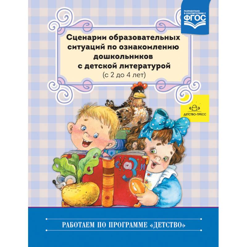 В пособии представлены сценарии образовательных ситуаций по ознакомлению детей 2-4 лет с детской литературой. Содержание сценариев образовательных ситуаций разработано в соответствии с особенностями восприятия художественной литературы малышами (выражать восприятие текста во внешнем действии, эмоционально реагировать на прослушанное произведение). Круг чтения для детей 2-4 лет включает знакомство с малыми формами фольклора, слушание русских народных сказок, чтение рассказов о животных, природных явлениях, детях, описание игровых и бытовых ситуаций. Согласно ФГОС дошкольного образования, задачи по приобщению младших дошкольников к книге требуют от воспитателя организации совместной с детьми художественно-речевой деятельности.
