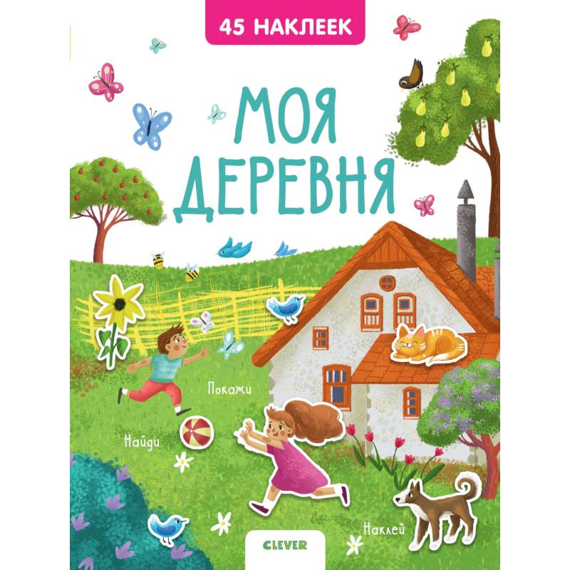 Малыш будет считать стрекоз, искать спрятавшегося песика, узнает, какие звуки издает трактор и как стригут овец, познакомится с пугалом и, конечно, пристроит несколько десятков наклеек в правильные места!