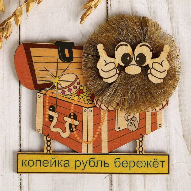 Магнит «Домовенок с сундуком», цветной, копейка рубль бережет, 10x9 см