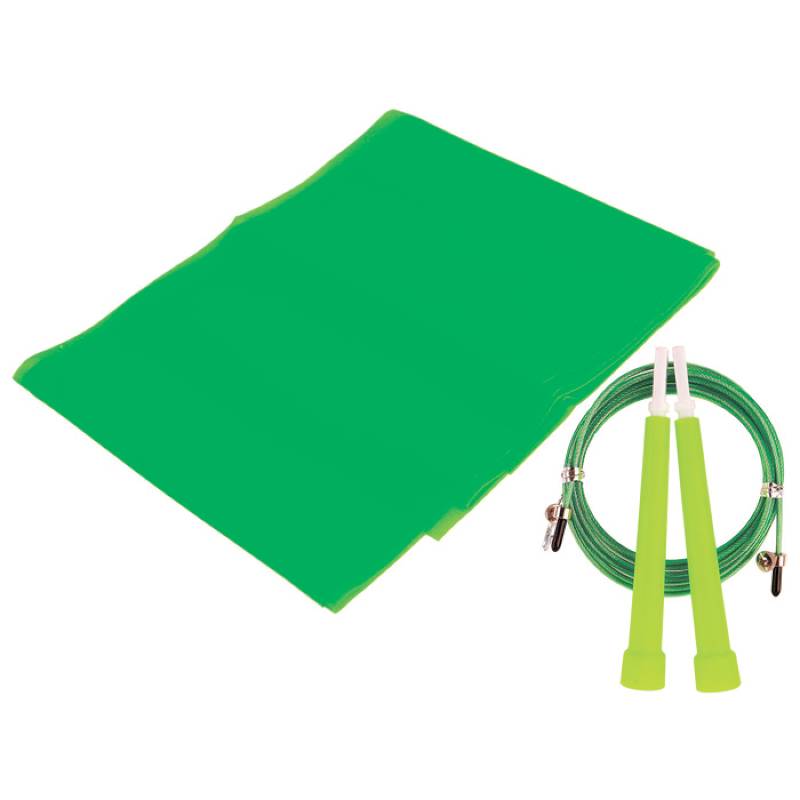 Набор для фитнеса (эспандер ленточный+скакалка скоростная), цвет зеленый