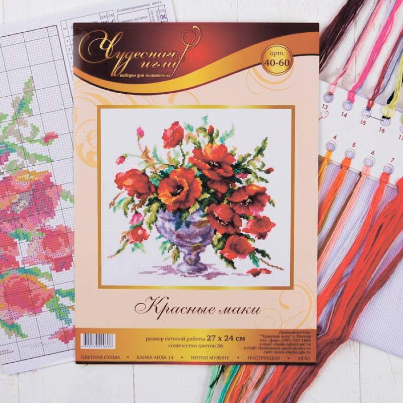Набор для вышивания крестом "Красные маки", 27x24 см
