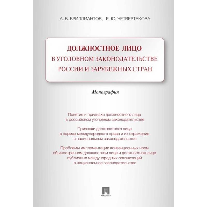 Монография посвящена вопросам о понятии и признаках должностного лица. Выбор проблемы обусловлен неоднозначностью теоретических подходов к определению указанного понятия, отсутствием единообразия применения соответствующей нормы уголовного закона на практике и, как следствие, наличием ошибок в следственной и судебной практике.