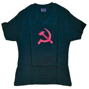 Футболка женская, черная. С серпом и молотом. Размер XL