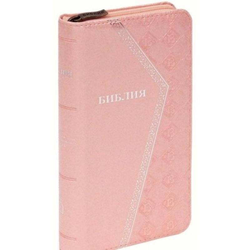 Библия каноническая 045 УZTIA (светло-розовый, экокожа, серебряный обрез, на молнии)