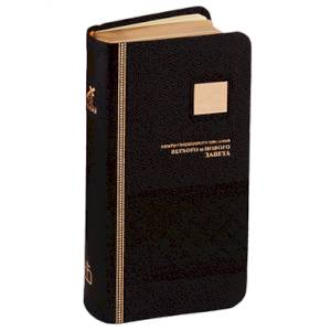 .Формат 83х175 мм, переплет из экокожи, "золотой" обрез, закладка, индексы для поиска библейских книг.