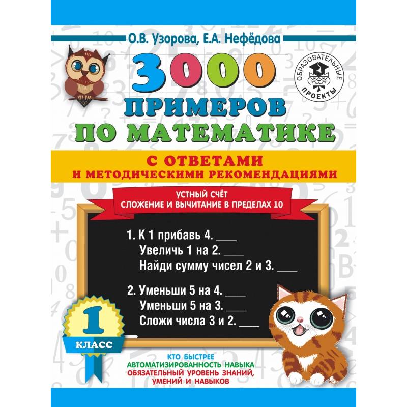 3000 примеров по математике с ответами и методическими рекомендациями. Устный счет. Сложение и вычитание в пределах 10. 1 класс
