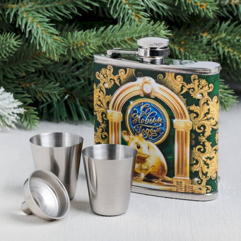 Подарочный набор «С Новым годом»: фляга 180 мл, стопка 2 шт, воронка
