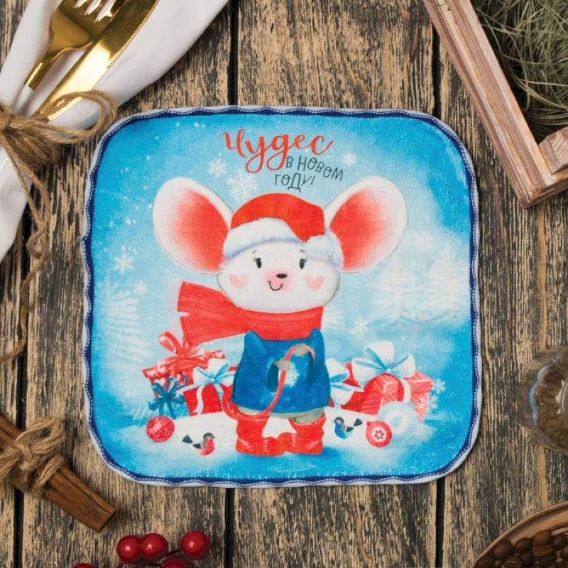 Полотенце микрофибра Доляна "Чудес в новом году!", 20x20 см