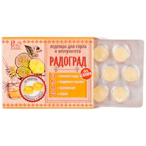 Живичные леденцы «Радоград» с лимоном и мёдом - пожалуй, лучшее средство при первых признаках простуды, да еще и низкокалорийное. В составе: Живица (смола) кедра, кедровое масло, прополис, витамин С и изомальт в качестве сахарозаменителя. В упаковке – 10 леденцов с изомальтом в блистере.
