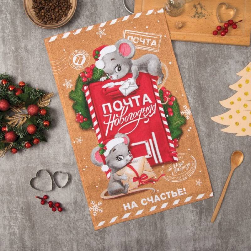 Полотенце "Доляна" Новогодняя почта 35x60см,100% хлопок 160 г/м2