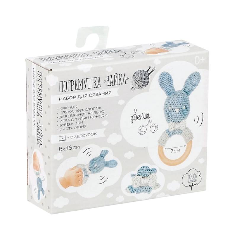 Погремушка «Зайка» голубая, набор для вязания
