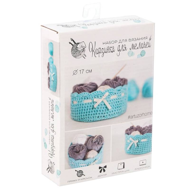 Корзинка для мелочей, набор для вязания, голубая, 11x16x4 см