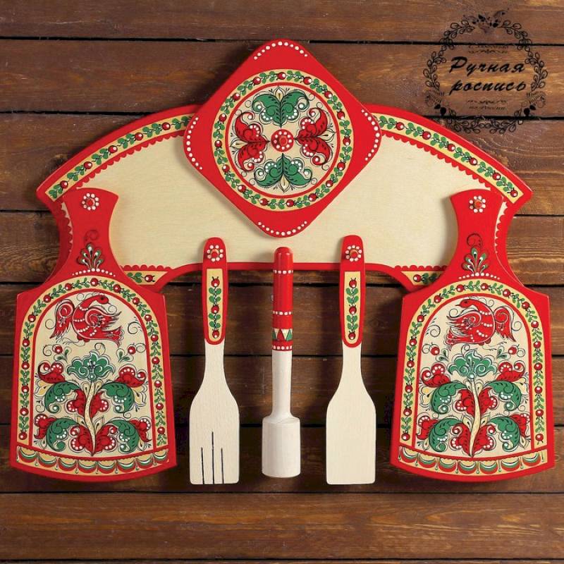 Набор кухонный с толкушкой, 7 предметов, борецкая роспись