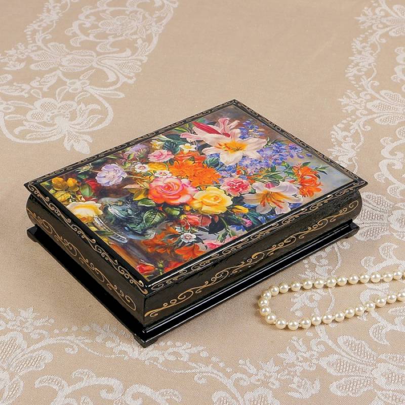 Шкатулка «Цветы в прозрачной вазе», 17x22 см, лаковая миниатюра