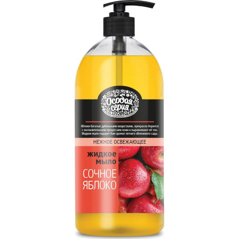 Мыло с восхитительным ароматом свежего яблока нежно ухаживает за кожей, увлажняя и питая. Жидкое мыло СОЧНОЕ ЯБЛОКО бережно очищает кожу и дарит аромат летнего яблоневого сада. Яблоки богаты дубильными веществами, а потому прекрасно борются с воспалительными процессами кожи и выравнивают её тон.