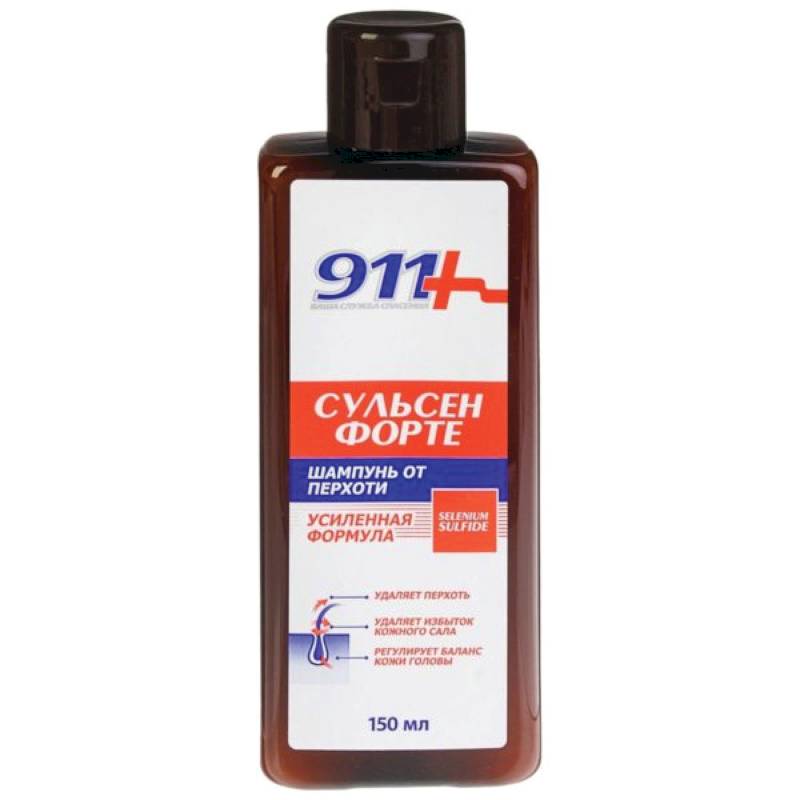 Шампунь «Сульсен Форте» 911 оказывает отшелушивающее действие. Содержит Сульсен (Дисульфид Селена) – активный компонент, устраняющий перхоть.