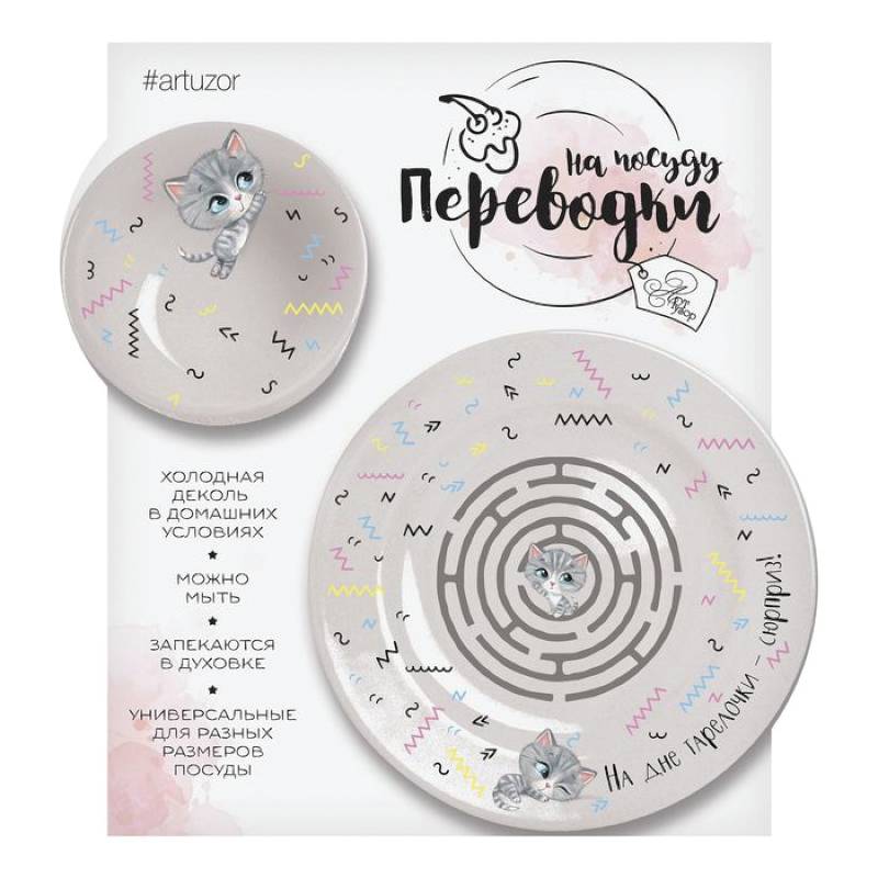 Переводки на посуду (холодная деколь) «Накорми котика!», 17x18 см