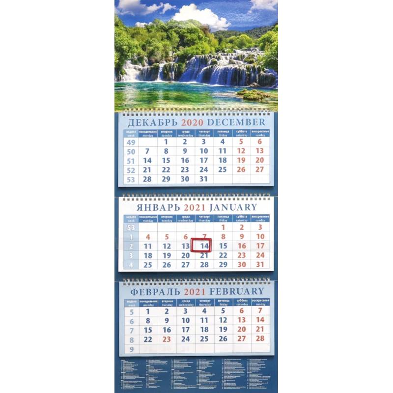 Календарь квартальный на 2021 год "Прекрасный водопад"