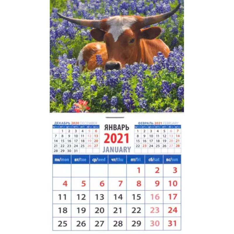 Календарь магнитный на 2021 год "Год быка. Среди цветов" (20134)