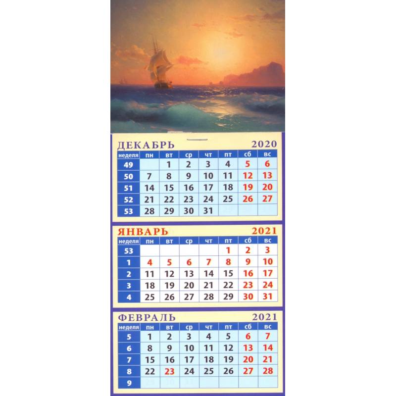 Календарь квартальный на магните на 2021 год "Иван Айвазовский. Закат над островом Искья"