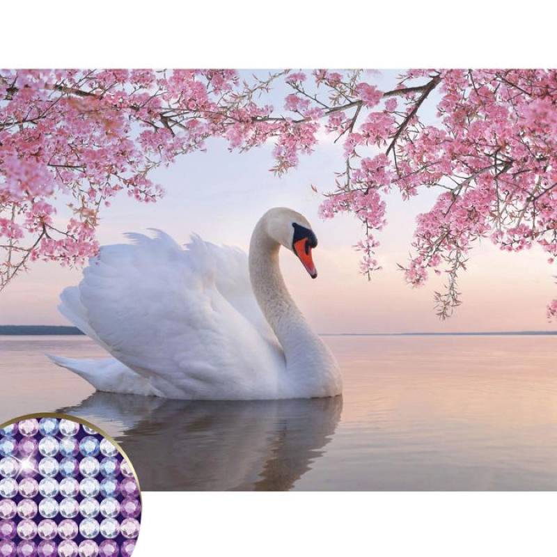 Алмазная вышивка с частичным заполнением «Белый лебедь» 30x40 см, холст, ёмкость