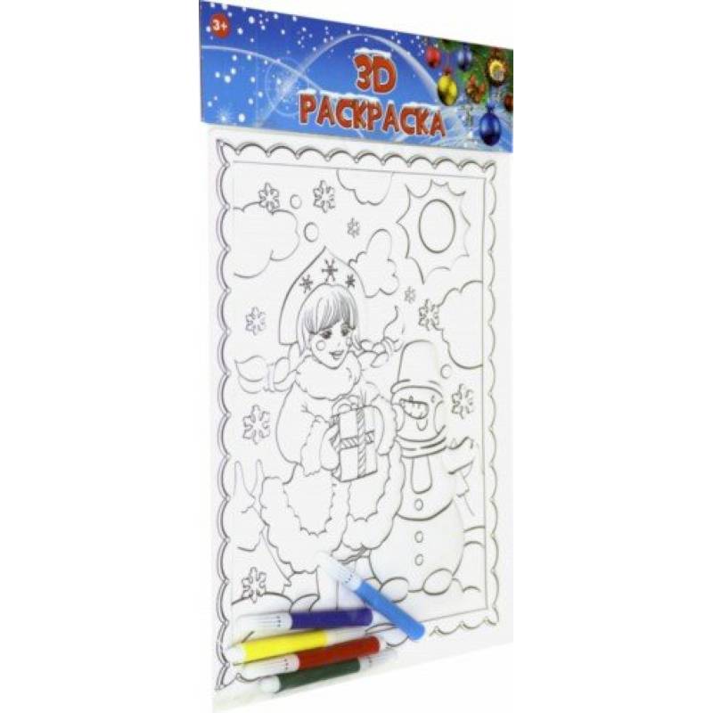 3D раскраска. СНЕЖНАЯ ДЕВОЧКА И СНЕГОВИК (Р-7311)