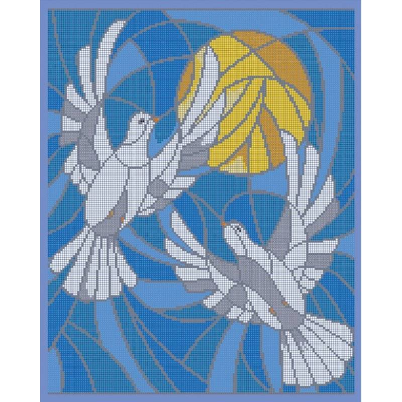 "Витражные голуби" 30x38см набор для вышивания чешским бисером "Вышивочка" ВЛ-218П