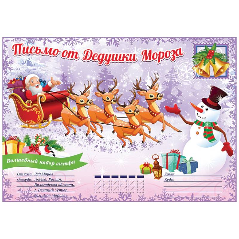 Готовый подарок ребёнку на Новый год от Деда Мороза: подарочный набор в большом эффектном картонном конверте (324*229 мм) с листом фигурных новогодних наклеек, объемной поделкой-игрушкой из картона и цветной поздравительной открыткой от Деда Мороза. Конверт, закрывающийся на язычок, можно подписать взрослому, указать имя ребёнка и адрес. Подарок от Деда Мороза – яркий и оригинальный – даст ребёнку возможность поверить в чудо и получить удовольствие от творческого процесса! Новогодними наклейками можно декорировать различные поверхности, а собранную по инструкции игрушку, детали для которой легко извлекаются из листа картона - повесить на настоящую ёлку. Подарочный набор из серии «Письмо от Дедушки Мороза. Новогодний подарок» станет отличным решением вопроса «Что подарить ребёнку на Новый год?», ведь именно об этом задумываются многие родители в конце уходящего года. Найти подарок под ёлкой, подарок от Деда Мороза - что может быть удивительнее для ребёнка в самую волшебную и долгожданную ночь в году!