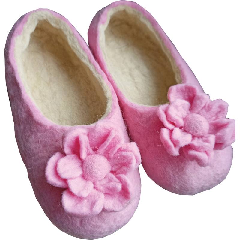 Тапочки войлочные розовые с цветком. Размер 41