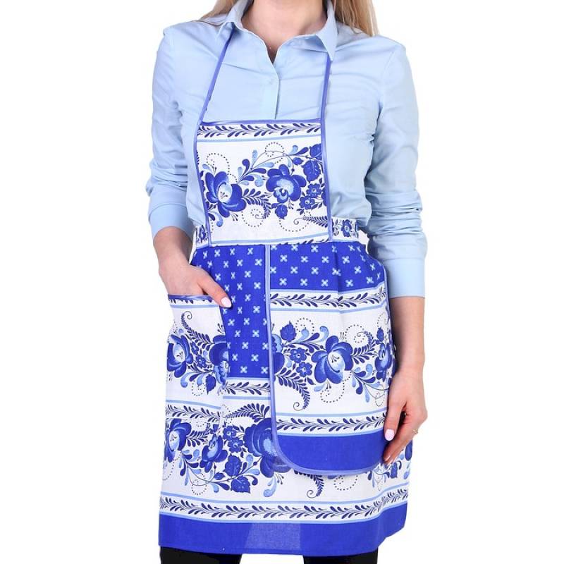 Фартук «Гжель», сувенирный, с карманом и полотенцем