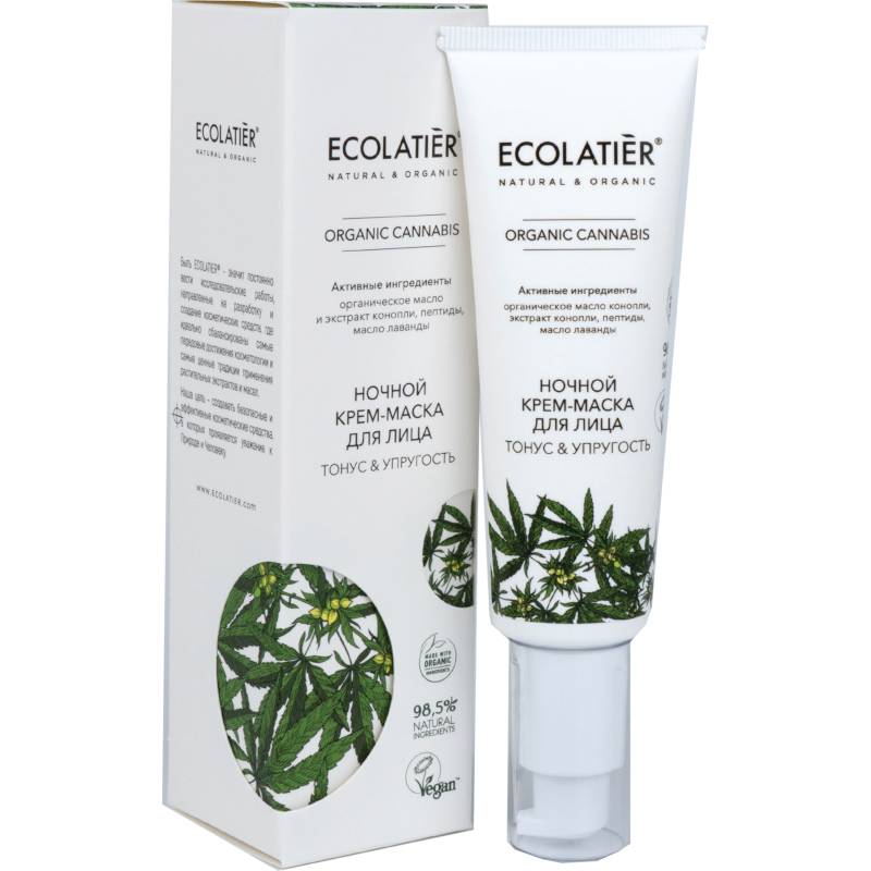 Ночной крем-маска ECOLATIER® Organic Cannabis с натуральными активными компонентами в составе - это эффективное сочетание увлажняющего крема и питательной маски. Создан для глубокого питания, восстановления и омоложения кожи лица. Воздействуя как маска, стимулирует естественные процессы обновления кожи во время сна.