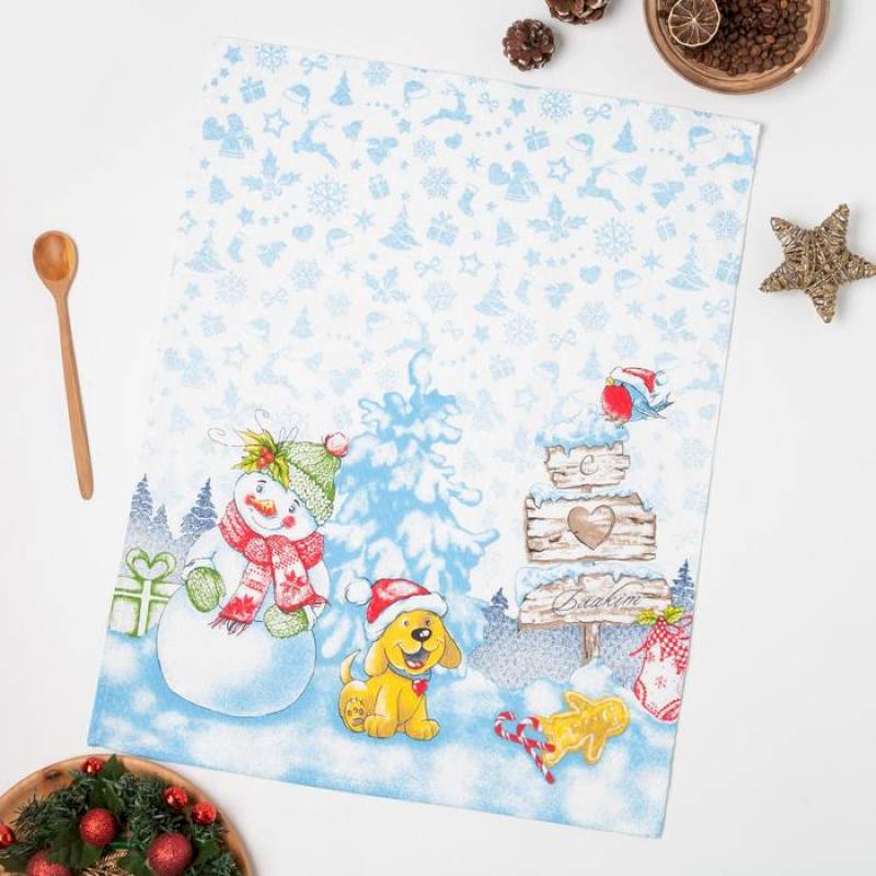 Полотенце вафельное Снеговик 2, 47x60 см, хлопок 100%, 185г/м2