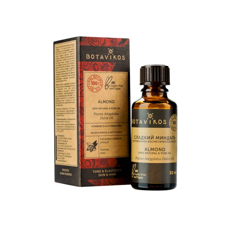 Миндальное масло получают из очищенных семян сладкого миндаля, родиной которого считается Средиземноморье и Средняя Азия. Помимо этих регионов в настоящее время миндаль активно культивируется в Китае, США, Копетдаге, Западном Тянь-Шане, на Кавказе, в Крыму. Масло косточки миндаля содержит глюкозиды, витамины А, В1, В2, В6, Е и F, минералы, белковые вещества, фермент эмульсин. В жирнокислотном составе преобладают олеиновая, линолевая, пальмитиновая кислоты.
