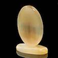 Селенит — это материал, который относится к разновидности гипса, жёлто-розового цвета с шелковистым блеском. Внутренние волокна расположены плотно, это даёт эффект «кошачьего глаза». Изделия из селенита завораживают игрой света, нежными тонами и хрупкостью. При прикосновении есть ощущение исходящей энергии.