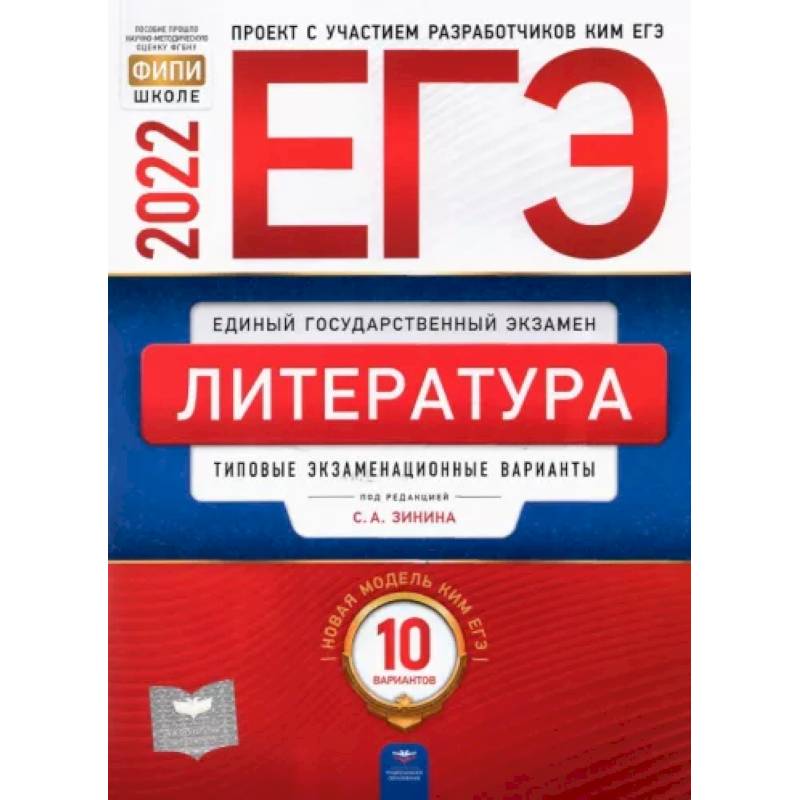 - 10 типовых экзаменационных вариантов, составленных в соответствии с проектом демоверсии КИМ ЕГЭ по литературе 2022 года;