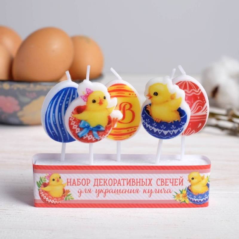 Набор свечей для кулича «Цыплята в скорлупках», 10 x 8 см