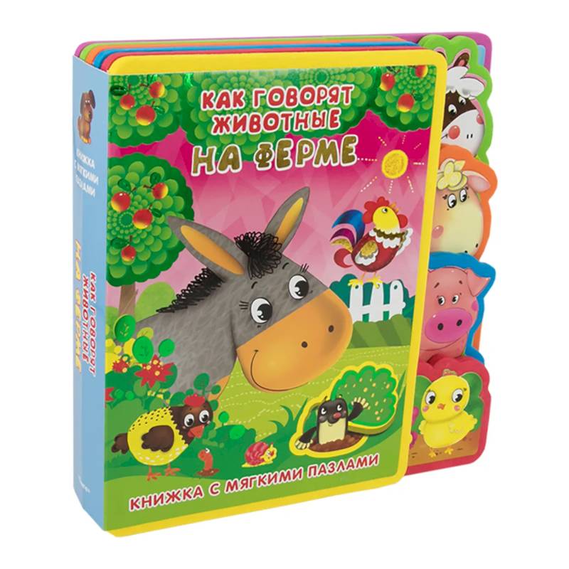 "Книжка с мягкими пазлами". Как говорят животные на ферме.